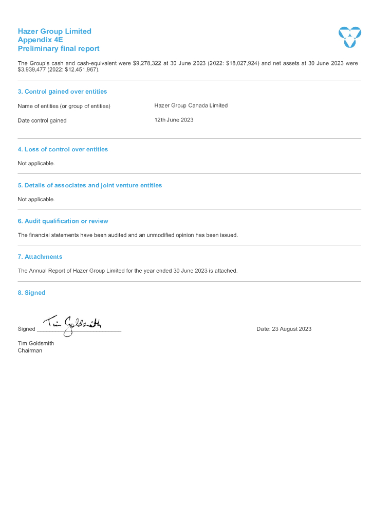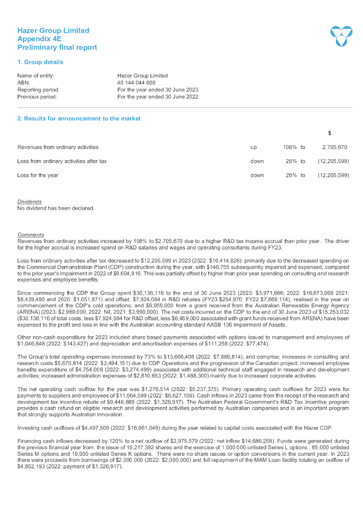 Hazer Group(HZR)2023财年年度报告(英文版).pdf