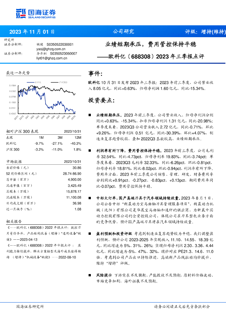 国海证券:欧科亿(688308)-2023年三季报点评:业绩短期承压,费用管控保持平稳.pdf