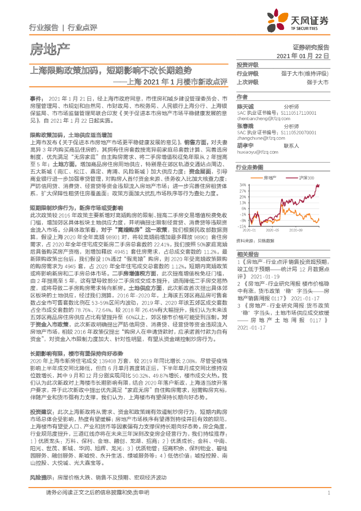 天风证券:房地产:上海2021年1月楼市新政点评:上海限购政策加码,短期影响不改长期趋势.pdf