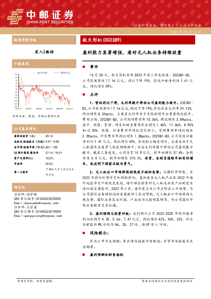 中邮证券:航天彩虹(002389)-盈利能力显著增强,看好无人机业务持续放量.pdf