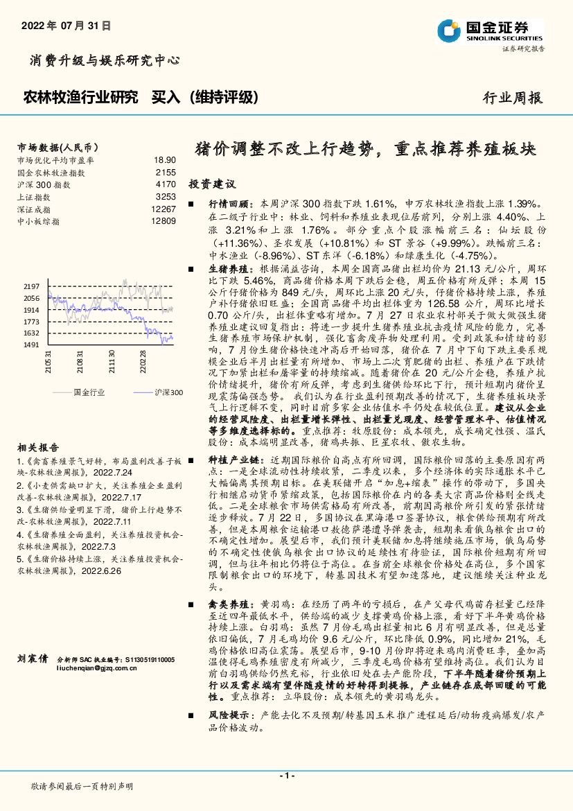 国金证券:农林牧渔行业周报:猪价调整不改上行趋势,重点推荐养殖板块.pdf