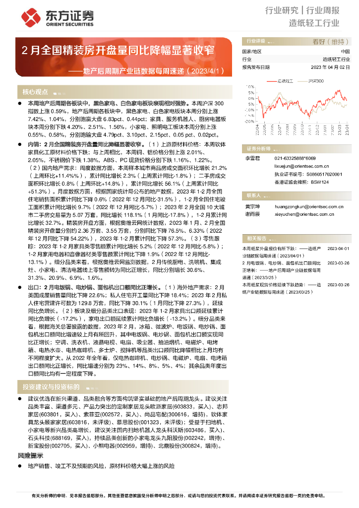 东方证券:地产后周期产业链数据每周速递:2月全国精装房开盘量同比降幅显著收窄.pdf