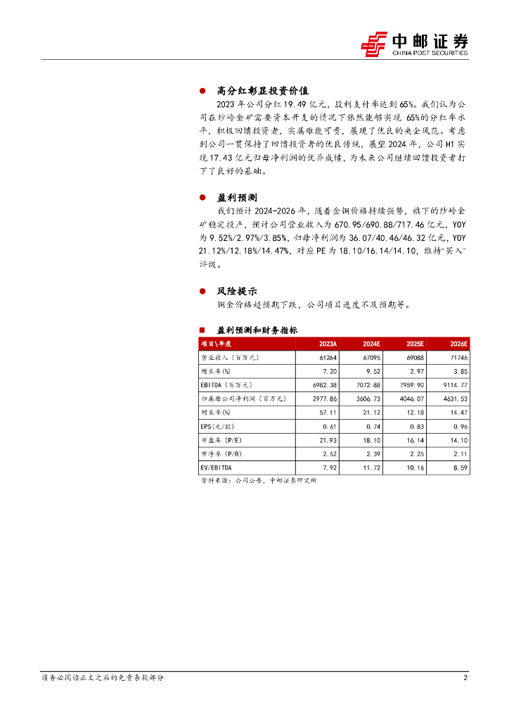 中邮证券:中金黄金(600489)-Q2业绩基本符合预期,高分红彰显投资价值.pdf