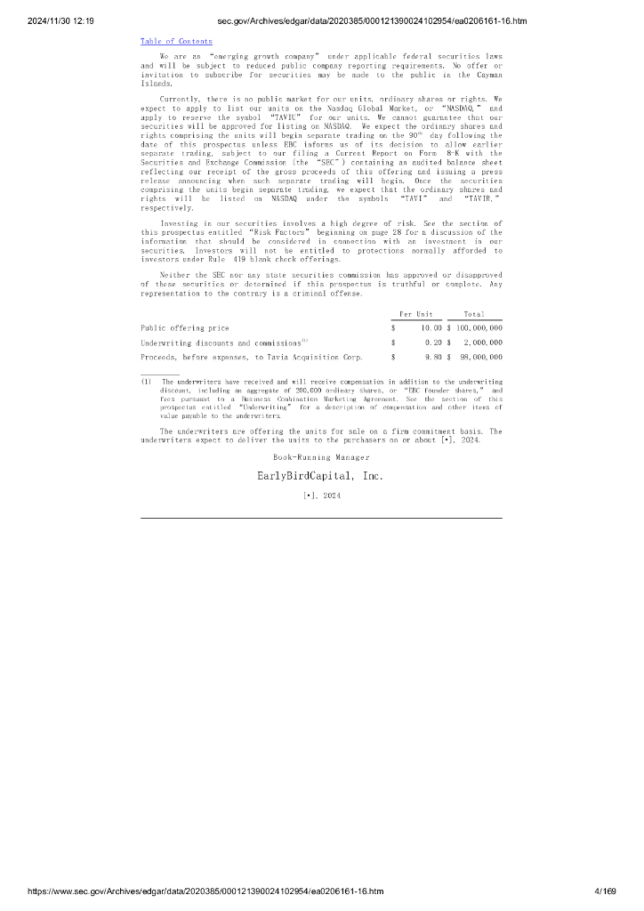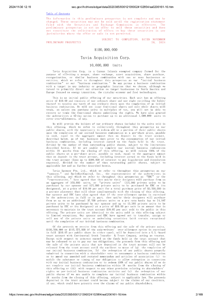 Tavia Acquisition Corp.美股纳斯达克IPO上市招股说明书.pdf