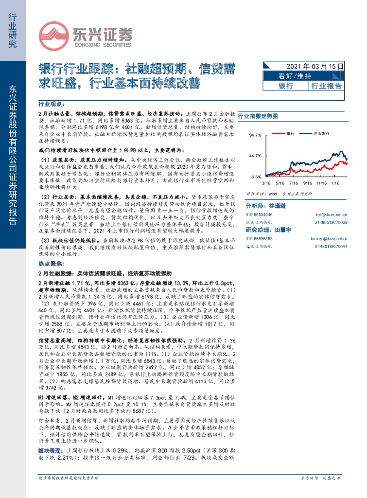东兴证券:银行行业跟踪:社融超预期、信贷需求旺盛,行业基本面持续改善.pdf