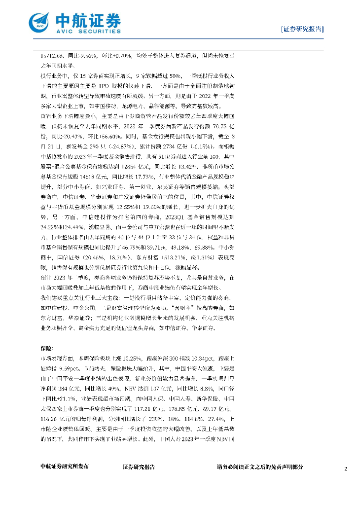 中航证券:非银行业周报(2023年第十六期):一季报业绩大幅回升,基金销售规模稳步增长.pdf