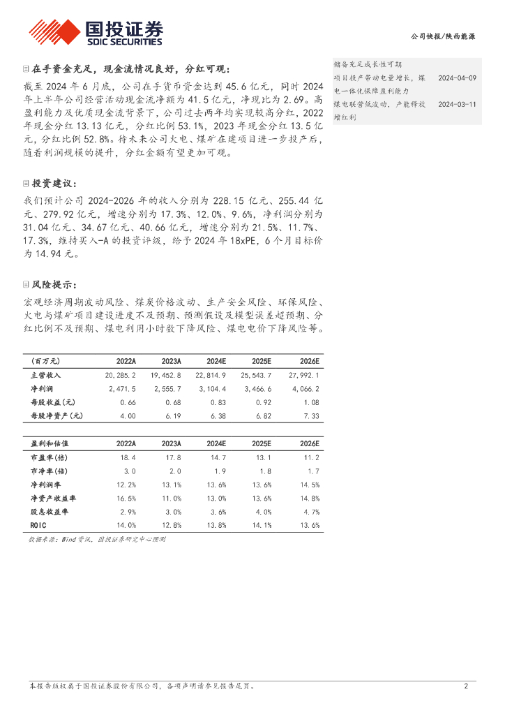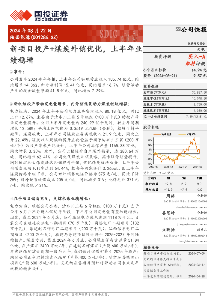 国投证券:陕西能源(001286)-公司快报:新项目投产+煤炭外销优化,上半年业绩稳增.pdf
