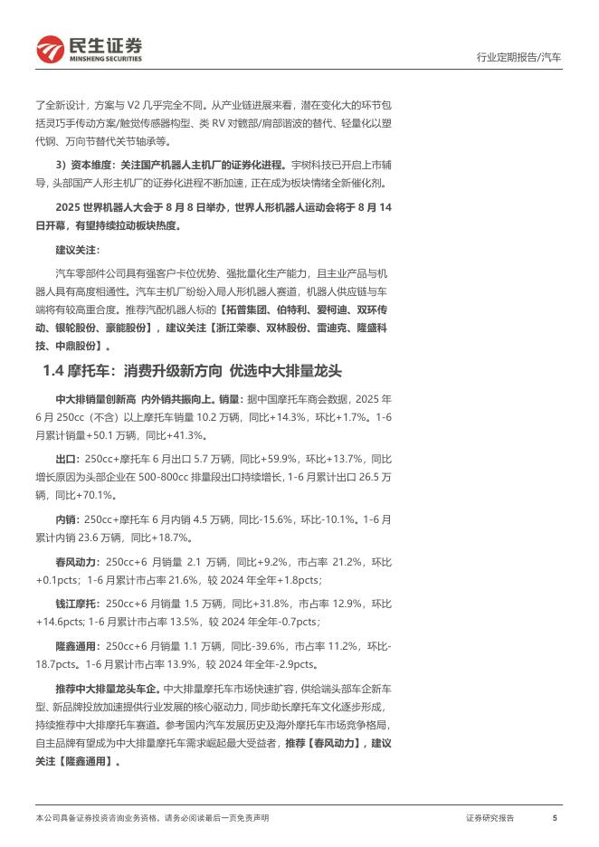 民生证券:汽车和汽车零部件行业周报:世界机器人大会召开机器人生态加速成型.pdf