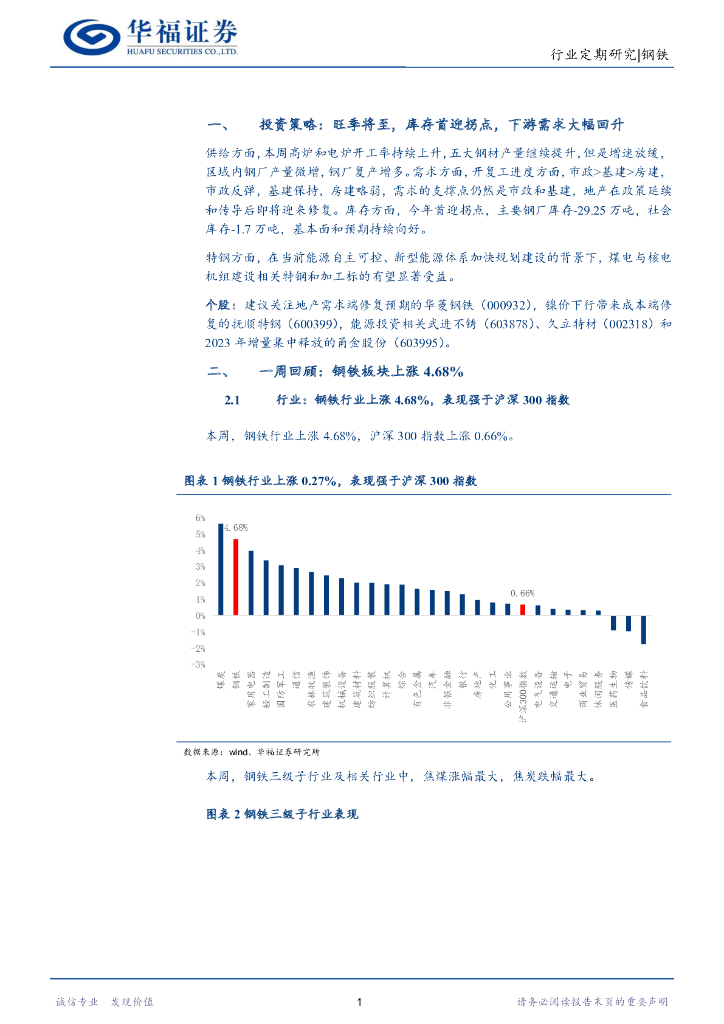 华福证券:钢铁行业周报:旺季将至,库存首迎拐点,下游需求大幅回升.pdf
