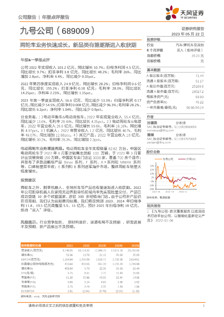 天风证券:九号公司(689009)-两轮车业务快速成长,新品类有望逐渐进入收获期.pdf