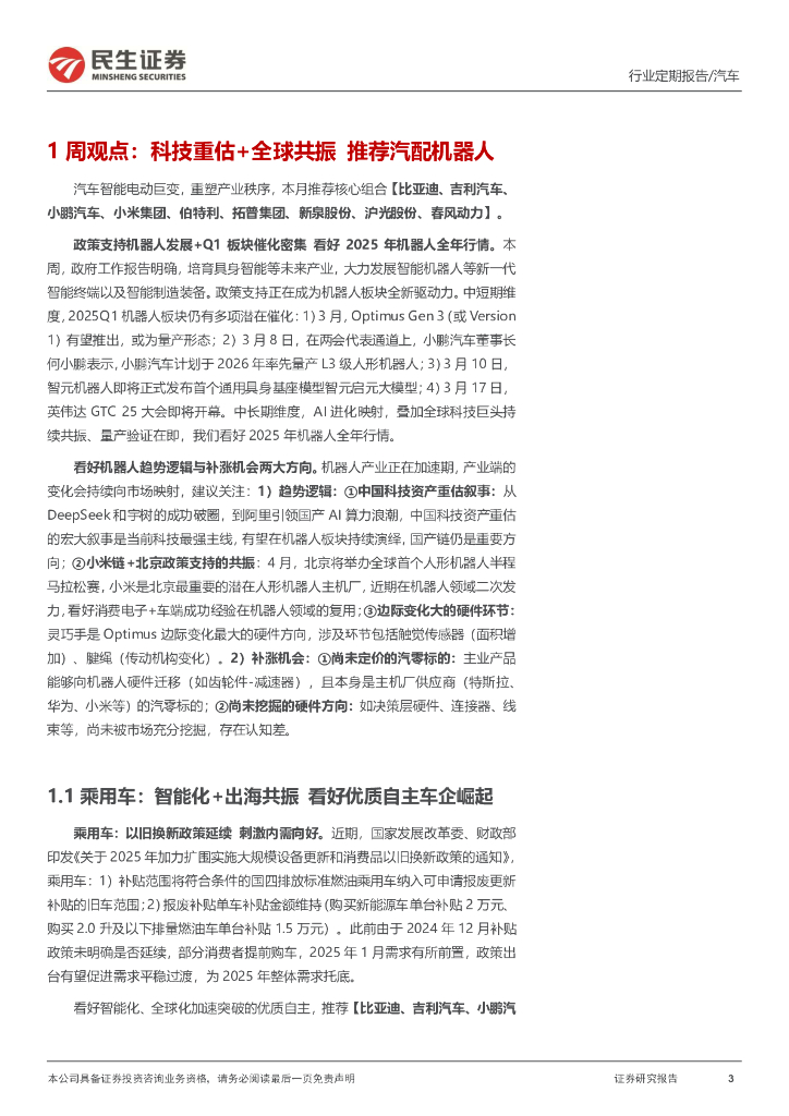 民生证券:汽车和汽车零部件行业周报:科技重估+全球共振推荐汽配机器人.pdf