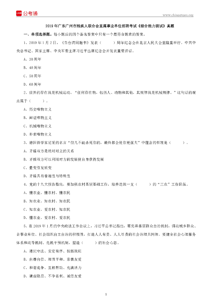 2019年广东广州市残疾人联合会直属事业单位招聘考试《综合能力测试》真题.pdf