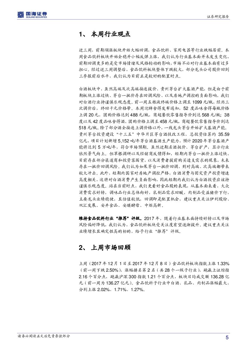 国海证券:食品饮料行业周报:茅台扩产白酒行业谨慎乐观,看好食品龙头企业稳健增长.pdf