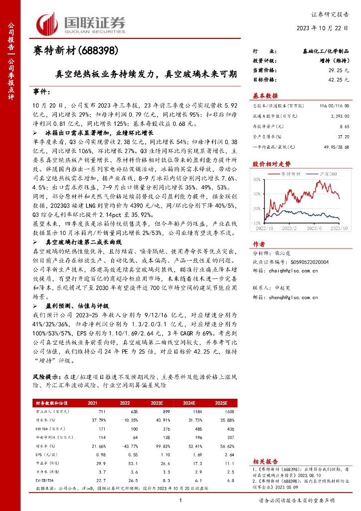 国联证券:赛特新材(688398)-真空绝热板业务持续发力,真空玻璃未来可期.pdf