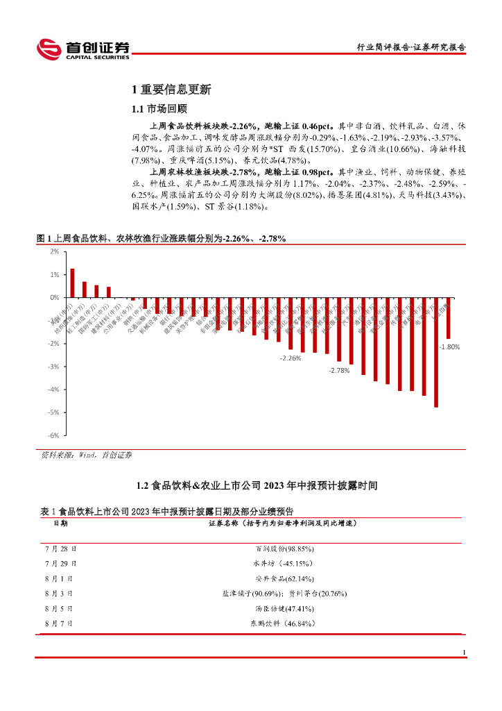 首创证券:农林牧渔&食品饮料行业简评报告:本周猪价窄幅震荡,关注食品高景气赛道.pdf