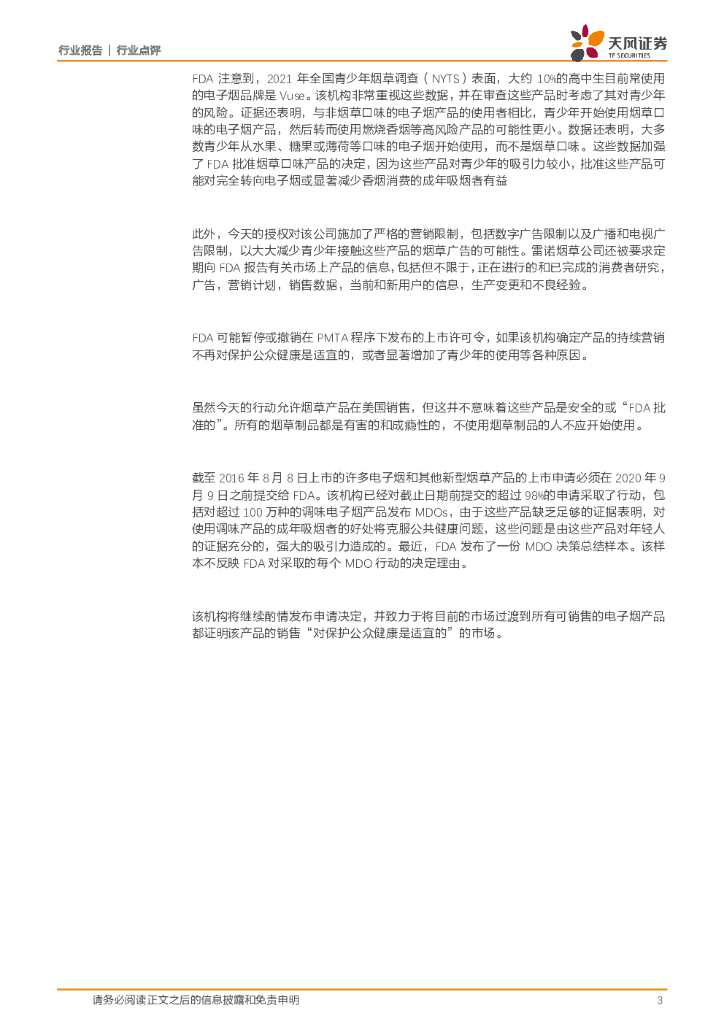 天风证券:新兴产业行业点评:FDA首次通过雾化电子烟PMTA申请,标杆作用意义重大.pdf