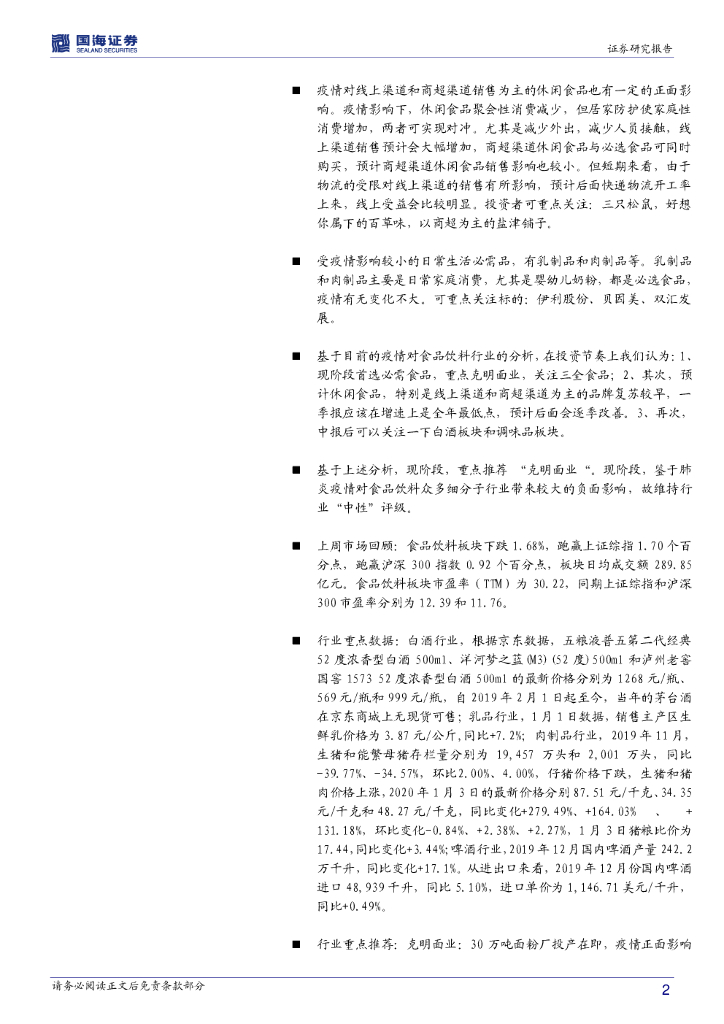 国海证券:食品饮料行业周报:疫情下看好必选食品,首推克明面业.pdf