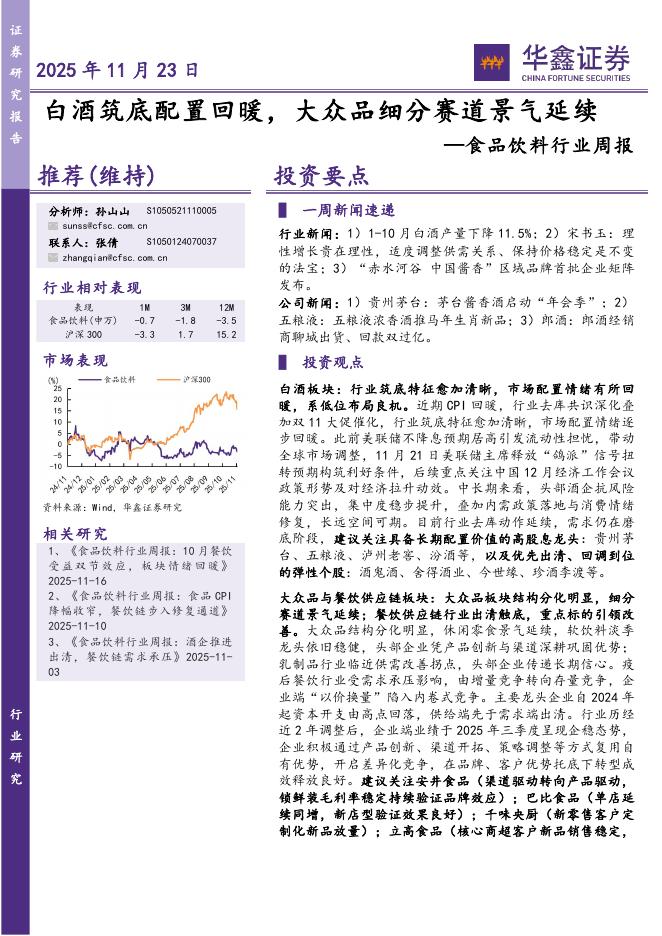 华鑫证券:食品饮料行业周报:白酒筑底配置回暖,大众品细分赛道景气延续.pdf