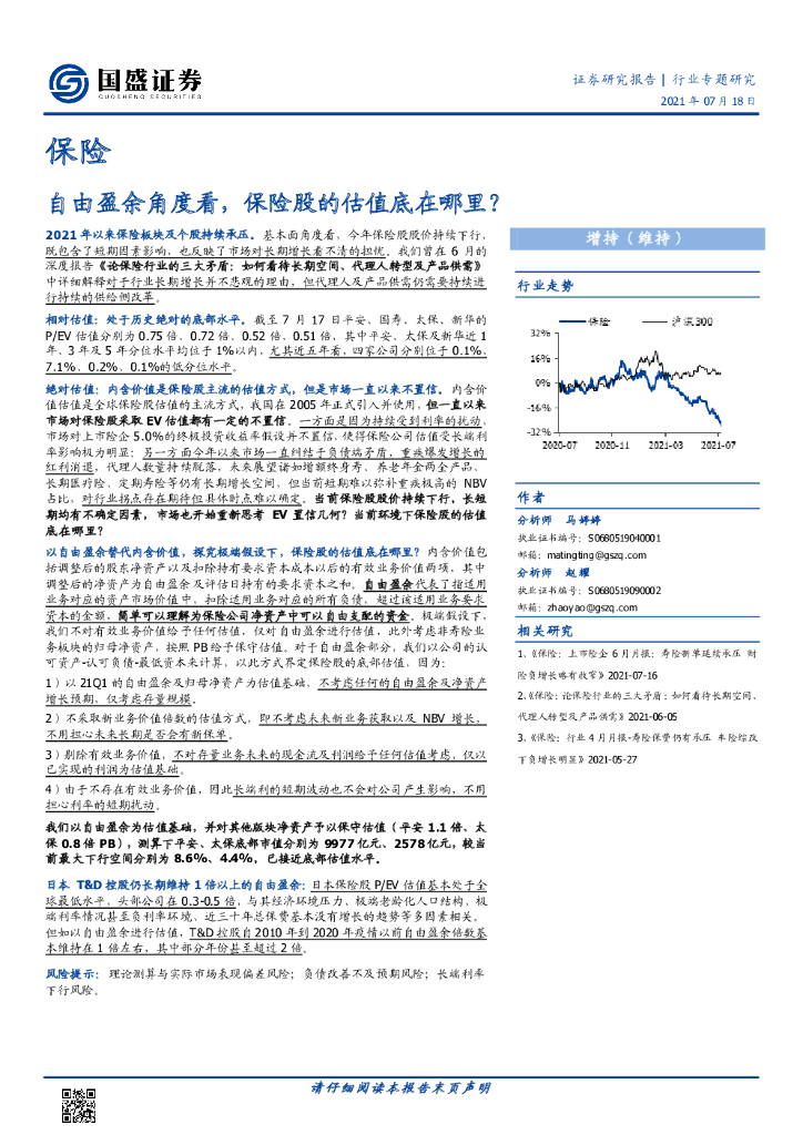 国盛证券:保险:自由盈余角度看,保险股的估值底在哪里?.pdf