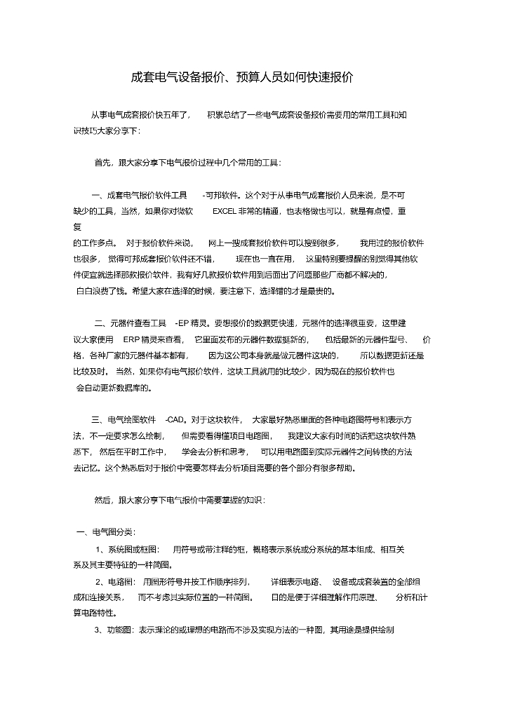 成套电气设备报价、预算人员如何快速报价.doc