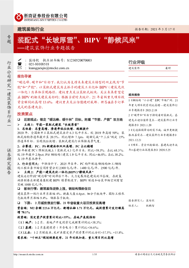 浙商证券:建筑装饰行业专题报告:装配式“长坡厚雪”、BIPV“静候风来”.pdf