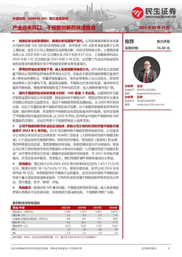 民生证券:中源协和(600645)-首次覆盖报告:产业迎来风口,干细胞创新药快速推进.pdf
