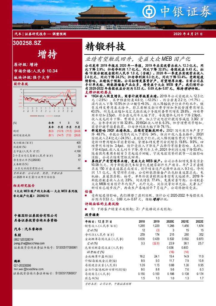 中银证券:精锻科技(300258)-业绩有望触底回升,受益大众MEB国产化.pdf