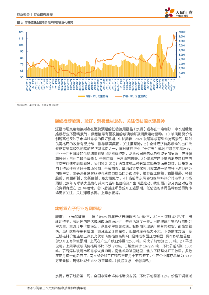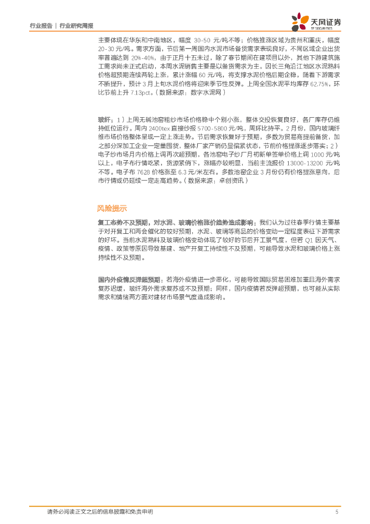天风证券:建筑材料行业研究周报:继续推荐玻璃、玻纤、消费建材,关注低估值水泥.pdf