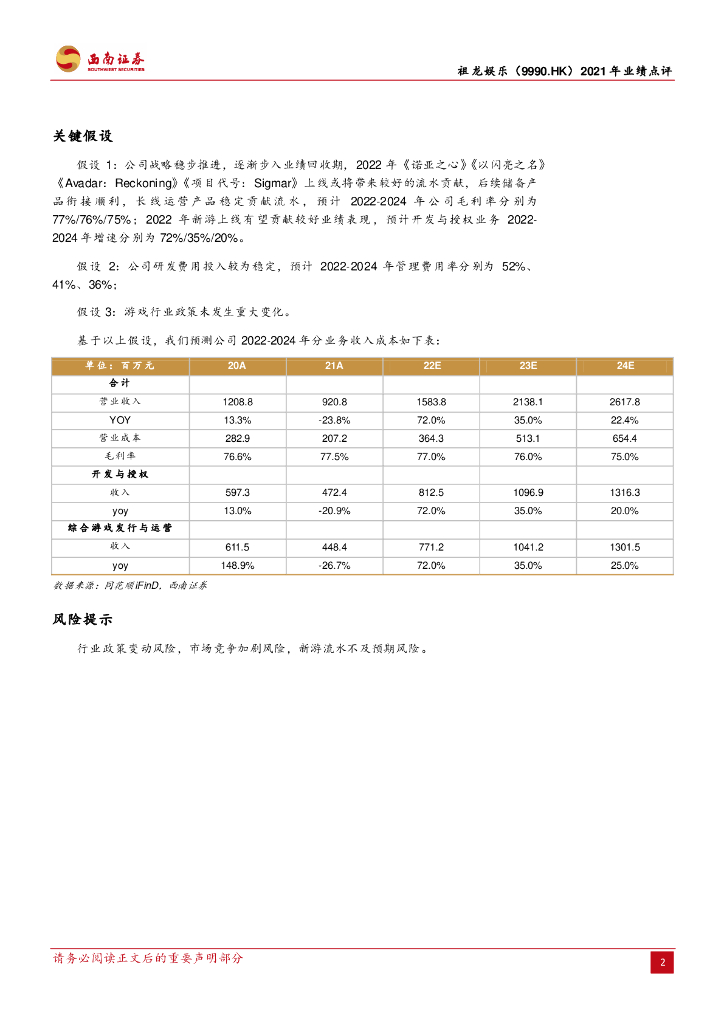 西南证券:祖龙娱乐(09990)港股公司研究报告-业绩短期承压,产品大年值得期待.pdf