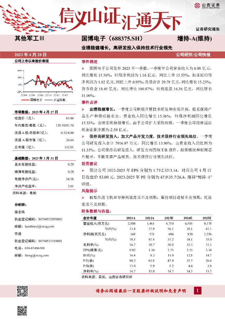 山西证券:国博电子(688375)-业绩稳健增长,高研发投入保持技术行业领先.pdf