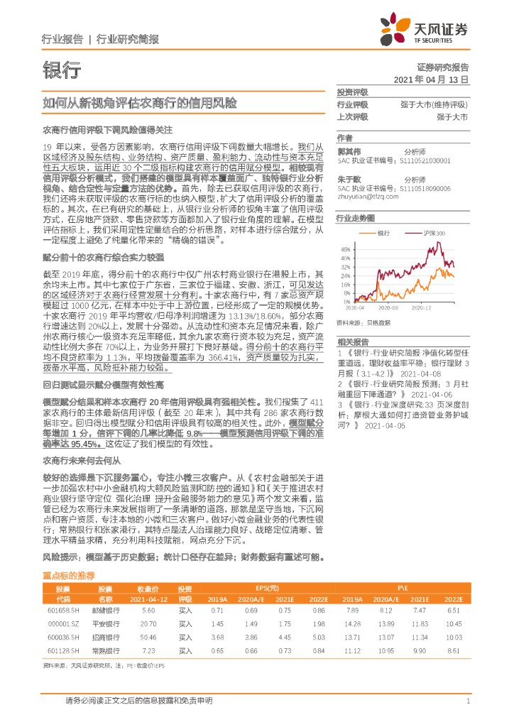 天风证券:银行行业研究简报:如何从新视角评估农商行的信用风险.pdf