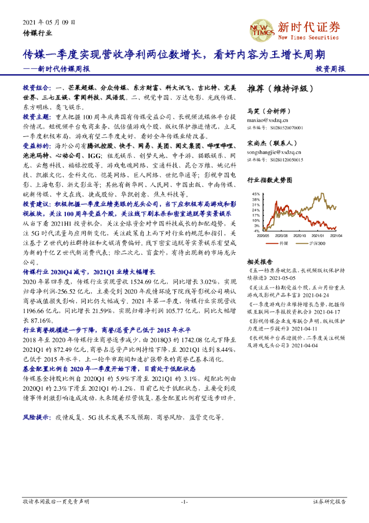 新时代证券:传媒周报:传媒一季度实现营收净利两位数增长,看好内容为王增长周期.pdf