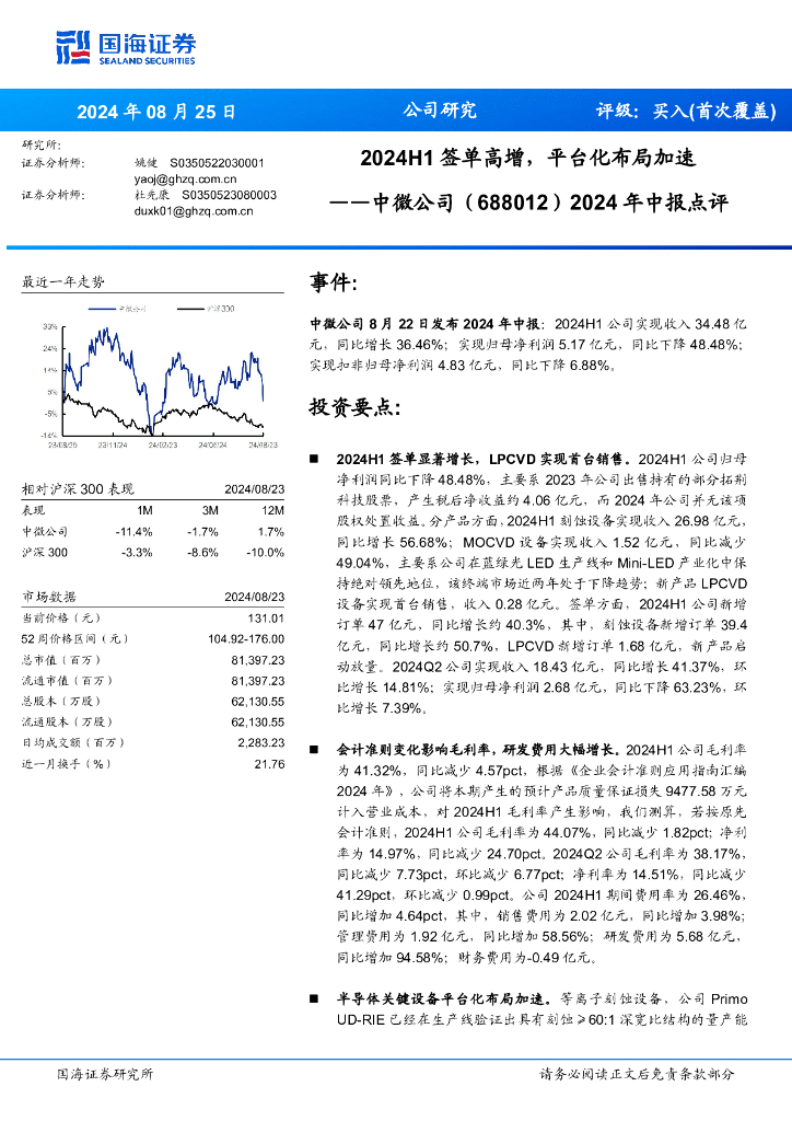 国海证券:中微公司(688012)-2024年中报点评:2024H1签单高增,平台化布局加速.pdf