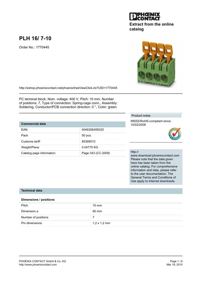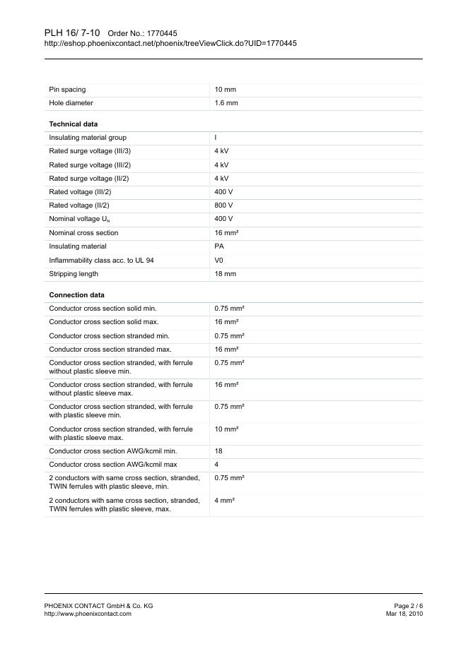 PHOENIX CONTACT PLH 16/ 7-10 Order No.: 1770445 数据手册.pdf