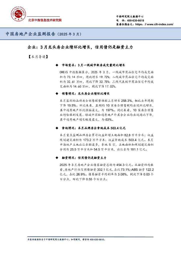 中指研究院:中国房地产企业监测报告(2025年3月).pdf