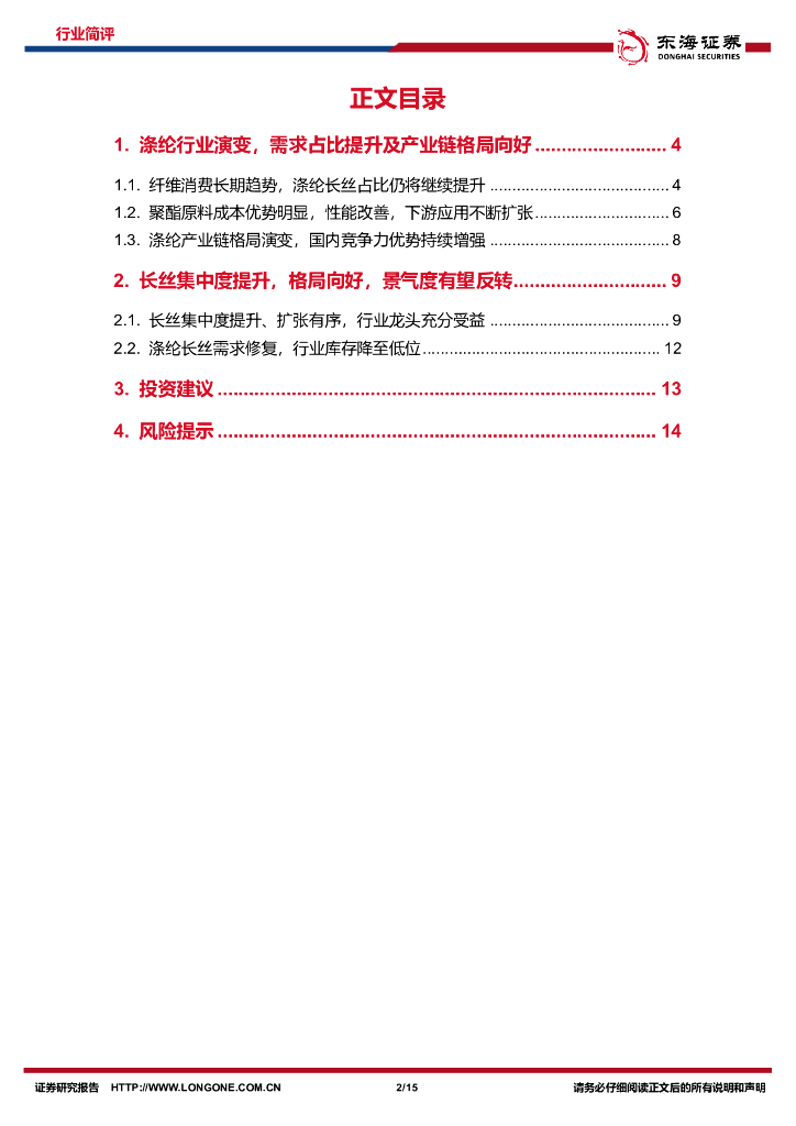 东海证券:化工系列研究(四):涤纶长丝长期需求占比提升,龙头驱动格局向好.pdf