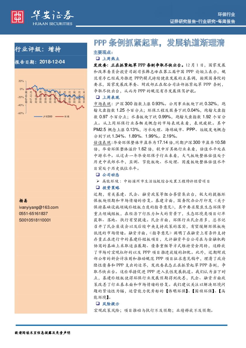 华安证券:环保行业每周报告:PPP条例抓紧起草,发展轨道渐理清.pdf