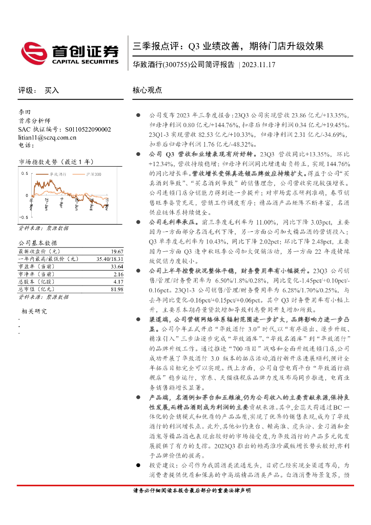 首创证券:华致酒行(300755)-三季报点评:Q3业绩改善,期待门店升级效果.pdf
