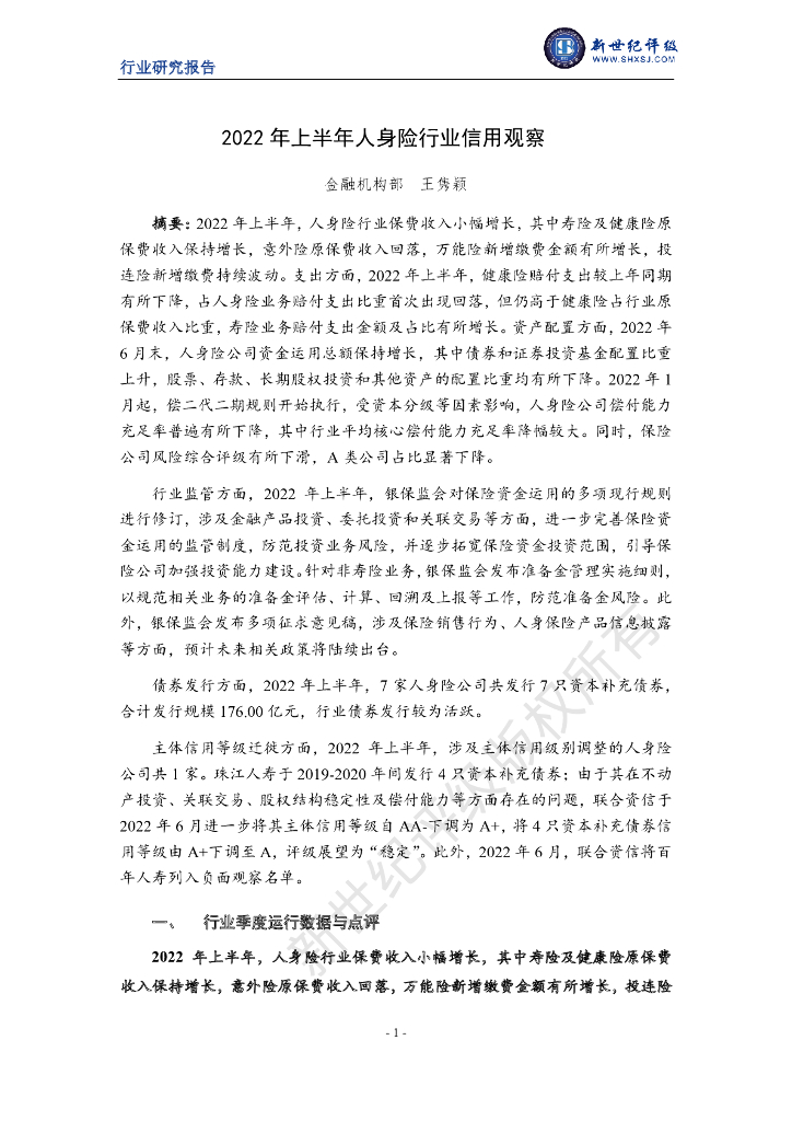 新世纪评级:2022年上半年人身险行业信用观察.pdf