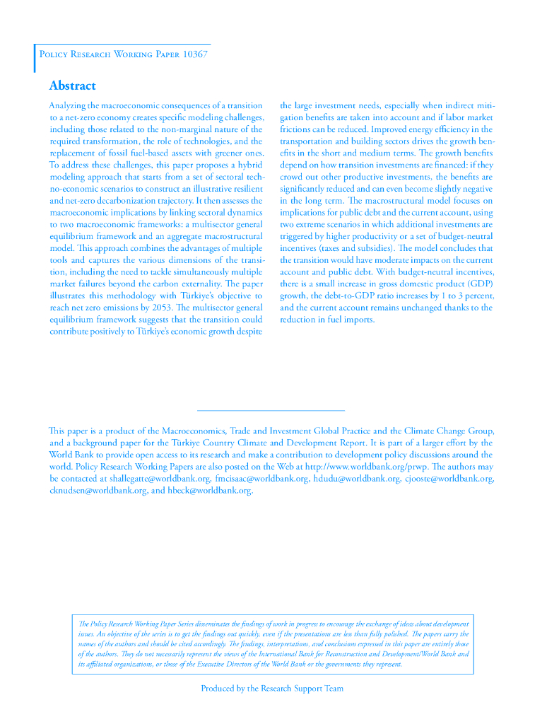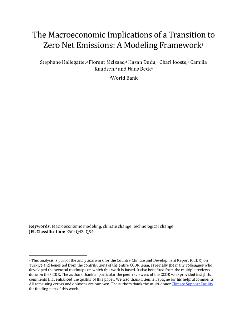 世界银行:向零净排放转变的宏观经济影响-一个模型框架(英文版).pdf