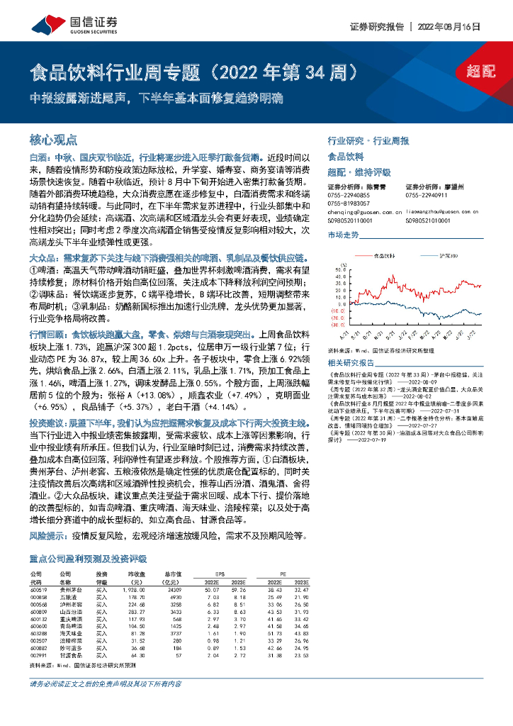 国信证券:食品饮料行业周专题(2022年第34周):中报披露渐进尾声,下半年基本面修复趋势明确.pdf