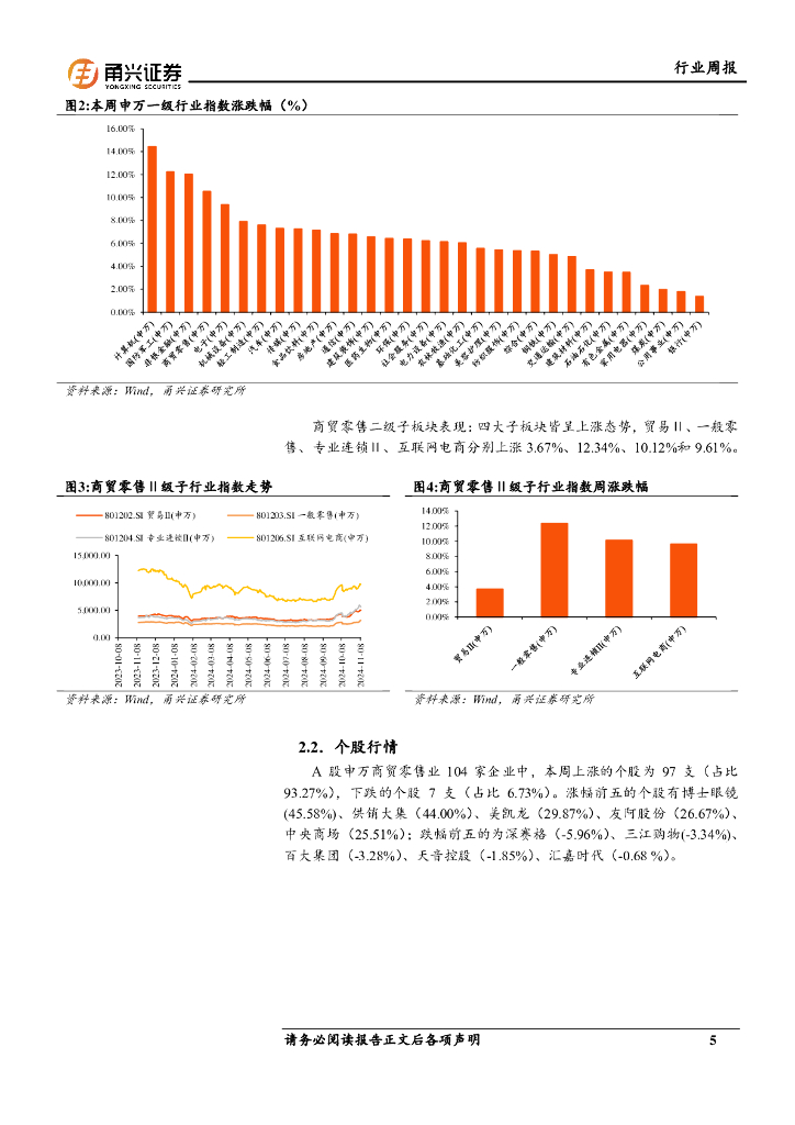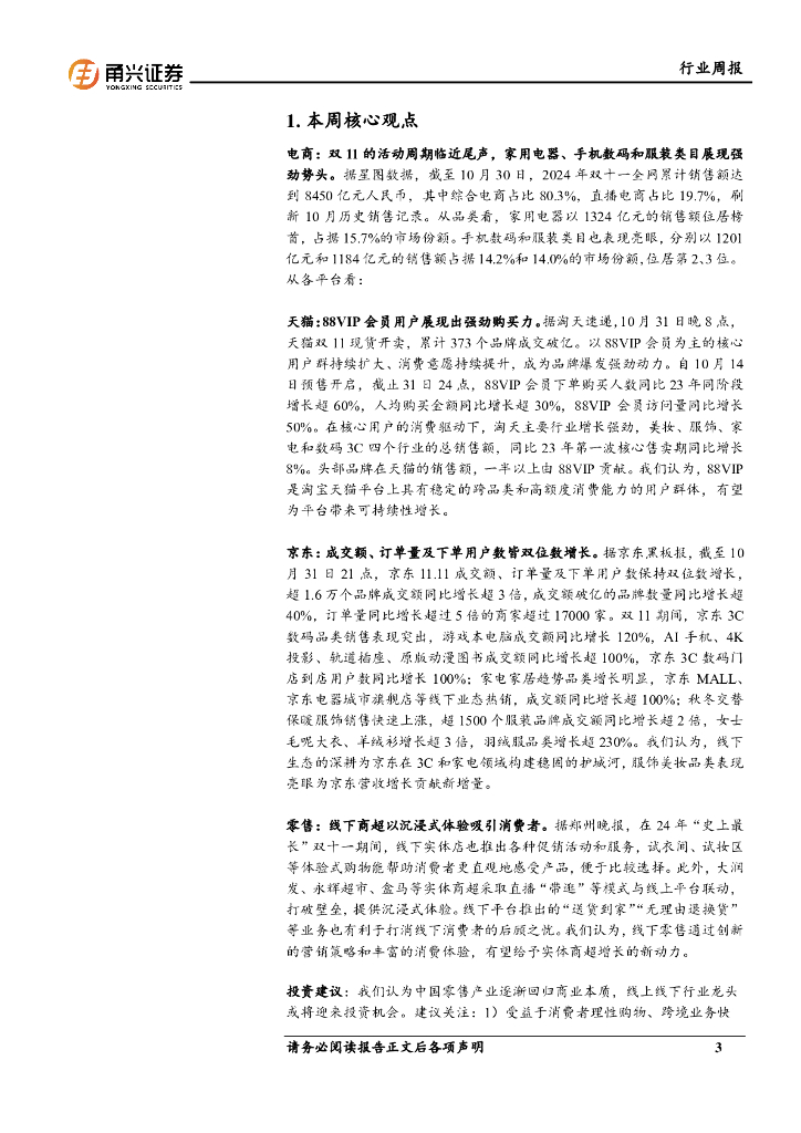 甬兴证券:商贸零售行业周报:双十一临近尾声,家用电器、手机数码和服装品类展现强劲势头.pdf