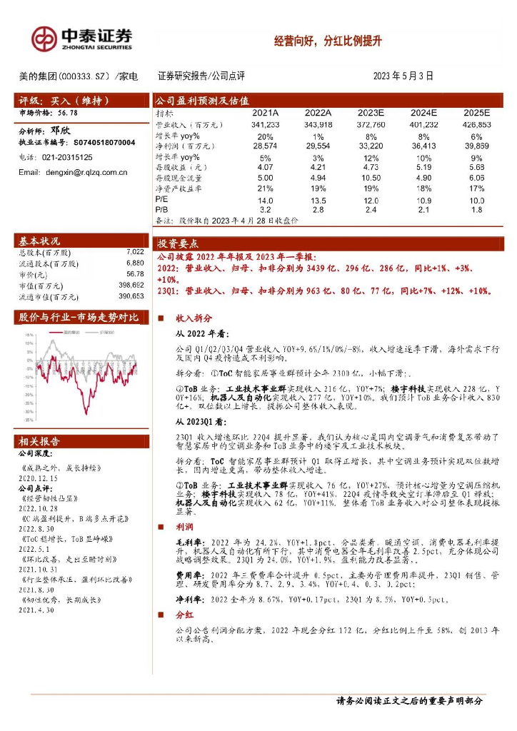 中泰证券:美的集团(000333)-经营向好,分红比例提升.pdf