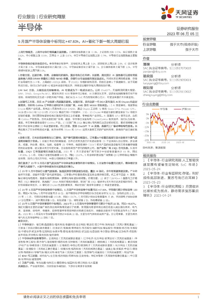 天风证券:半导体行业研究周报:5月国产半导体设备中标同比+47.83%,AI+催化下新一轮大周期已现.pdf