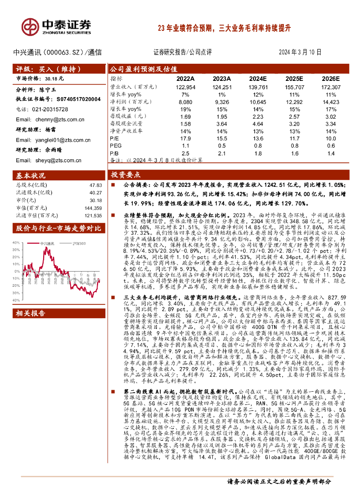 中泰证券:中兴通讯(000063)-23年业绩符合预期,三大业务毛利率持续提升.pdf