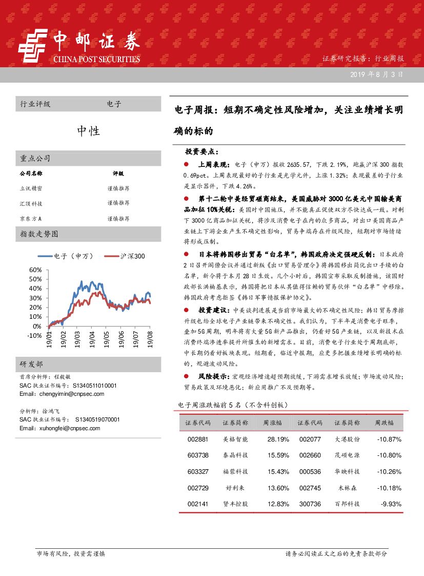 中邮证券:电子周报:短期不确定性风险增加,关注业绩增长明.pdf
