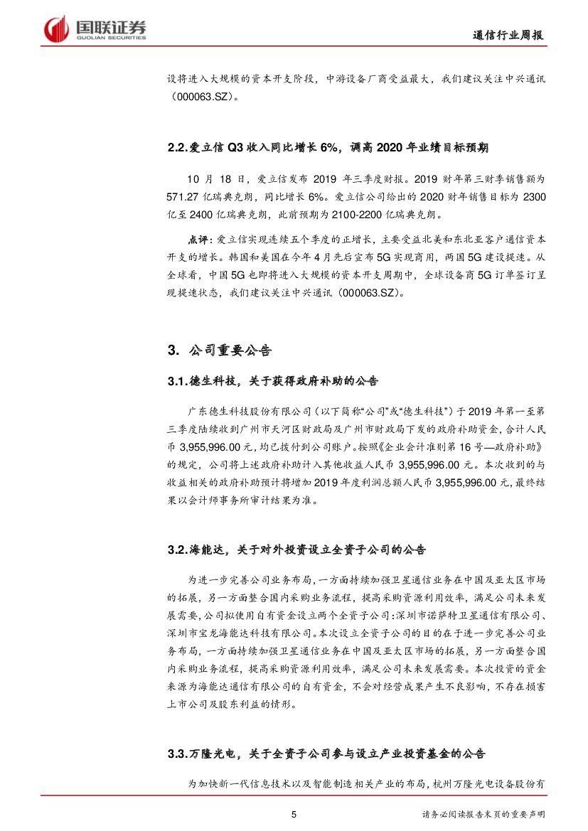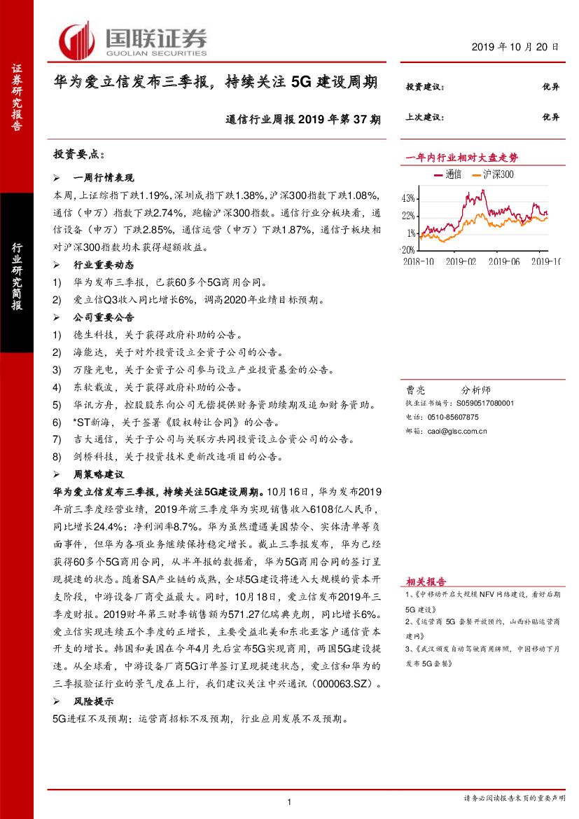 国联证券:通信行业周报2019年第37期:华为爱立信发布三季报,持续关注5G建设周期.pdf