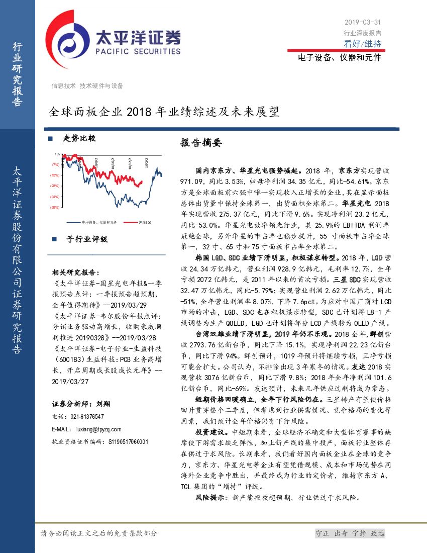 太平洋证券:电子设备、仪器和元件:全球面板企业2018年业绩综述及未来展望.pdf