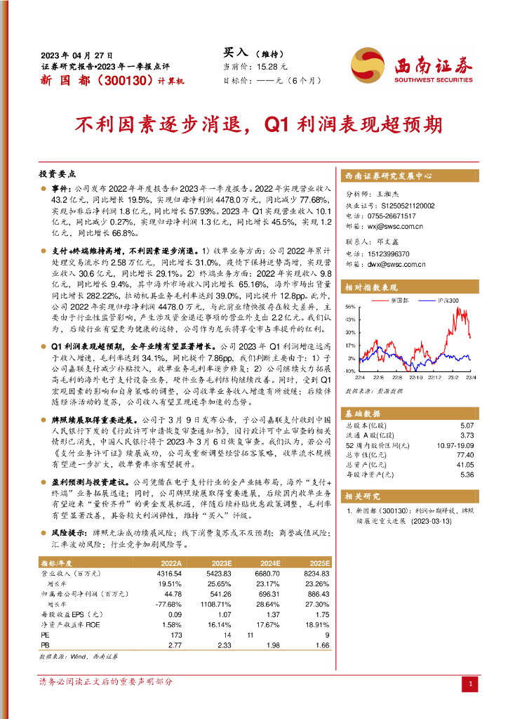 西南证券:新国都(300130)-不利因素逐步消退,Q1利润表现超预期.pdf