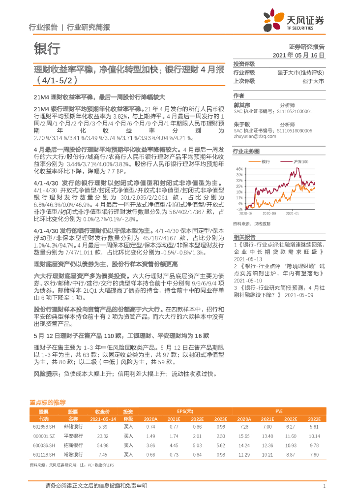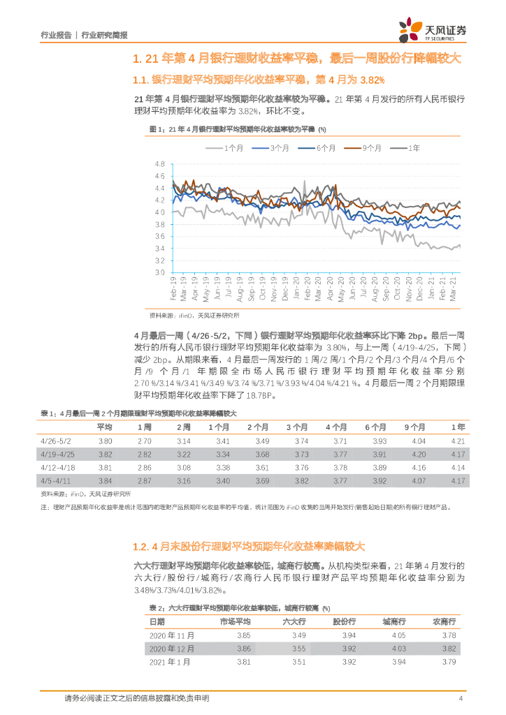 天风证券:银行理财4月报:理财收益率平稳,净值化转型加快.pdf